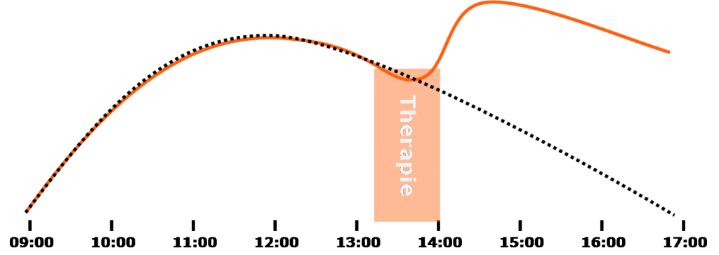 Trendwelle der Hirnwellen-Aktivitäten im laufe eines Arbeitstages: